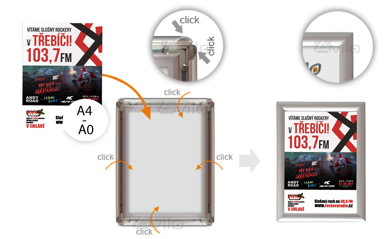 Klaprámy A4 - A0 Vám dodáme na klíč vč. tisku a kompletace plakátů do rámů!