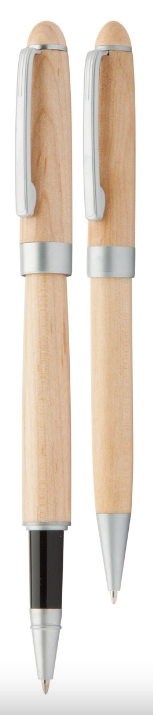 Luxusní dřevěná sada per s kuličkovým perem a rollerem v dárkové krabičce. S modrou náplní.