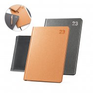 Moderní diář z korku velikosti B5. Praktický diář s držákem pro kuličkové pero a listy v barvě slonové kosti. Dodáváno v netkaném pouzdře. Pero není součástí balení. Možnost potisku.