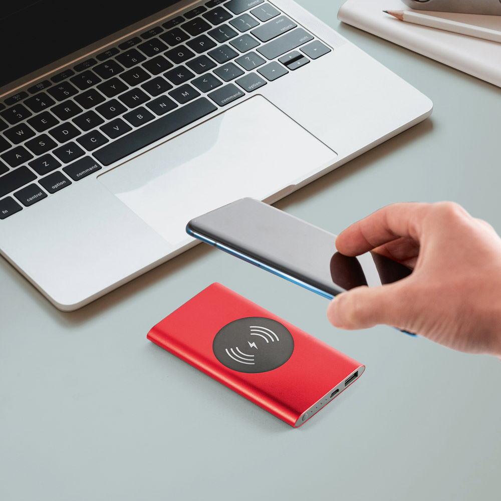 Hliníková přenosná baterie HIGHER s bezdrátovou nabíječkou. Litiová baterie s kapacitou 4000 mAh a životností cca 500 cyclů. Baterie má USB kabel a LED indikátor nabíjení. Kvalitní hliníková powerbanka může být originálním dárkem pro Vaše zaměstnance či obchodní partnery! Dodáváno v dárkovém balení.