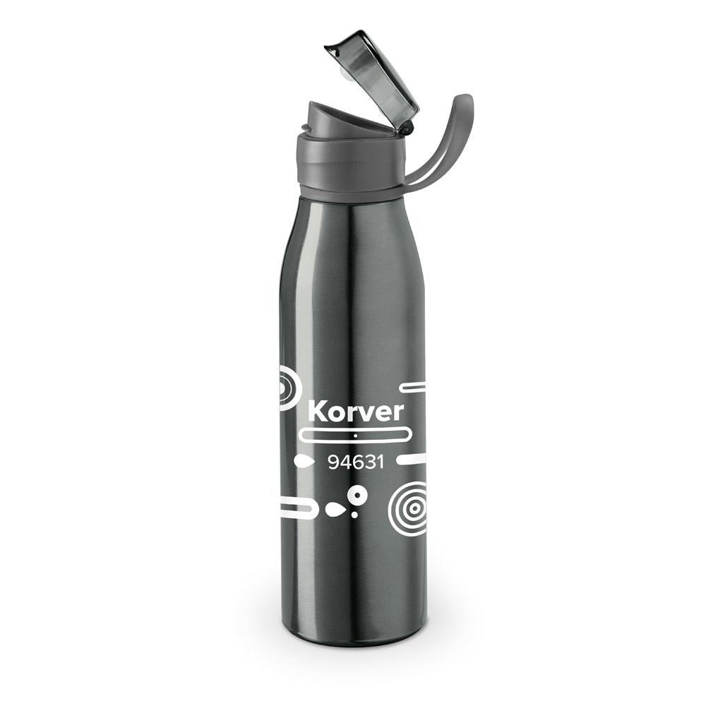 Hliníková sportovní láhev BOUNE o objemu 650ml s víčkem a rukojetí pro snadný transport. Lahev můžete připevnit např. na batoh a vyrazit ven. Atraktivní láhev na sport, do práce či pro volný čas!