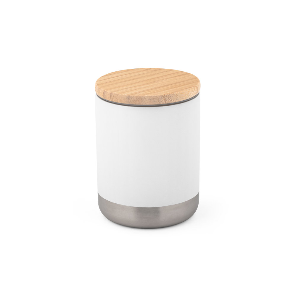 Dvoustěnný nerezový vakuový hrnek NOAR s bambusovým víkem a silikonovým těsněním pro extra ochranu. Udrží nápoje teplé 5,5 hodiny a studené 24 hodin. Má také práškový povlak, který mu dodává větší odolnost a pevnost. Obdarujte své obchodní partnery krásným hrnkem s vlastním logem aby mohli mít svůj oblíbený horký nápoj s sebou i na cestách! Dodáváno v krabičce z kartonu.