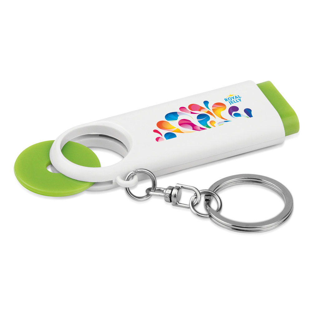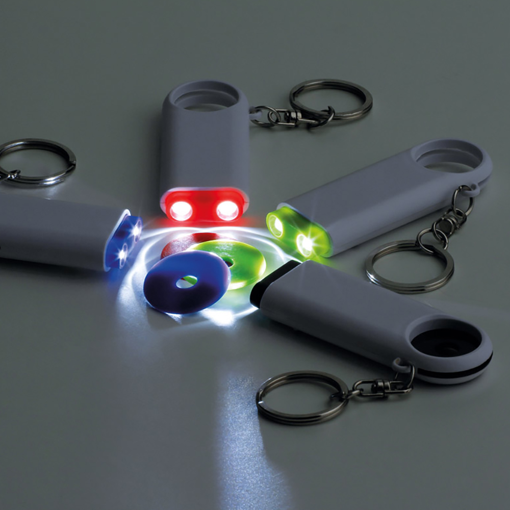Klíčenka ALLIN se 2 LED diodami a plastovou mincí do vozíku do supermarketu. Tato klíčenka 2v1 bude originálním a praktickým dárkem pro Vaše obchodní partnery či zaměstnance!