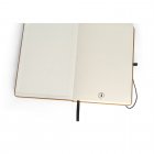 Korkový zápisník A5 MAPLE z recyklované kůže se 192 linkovanými stránkami ze slonoviny z udržitelného lesního hospodářství. Držák na pero, černý elastický pásek a stuha na záložku. Obsahuje vnitřní kapsu. Dodáváno v černé papírové obálce.
