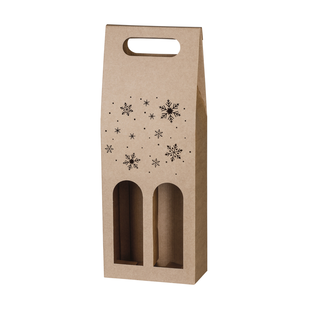 Dárková krabice na dvě vína MONA s výřezem a vánočním vzorem. Elegantní krabička ze 100% lepenky.