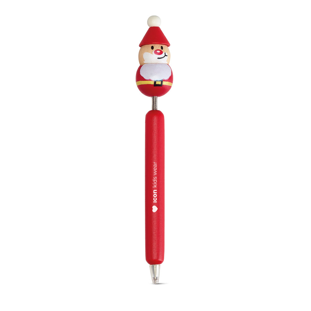 Dřevěné kuličkové pero SANTA s dřevěnou figurkou Santa Clause. Originální vánoční pero, které může být milou pozorností pro Vaše klienty či obchodní partnery!