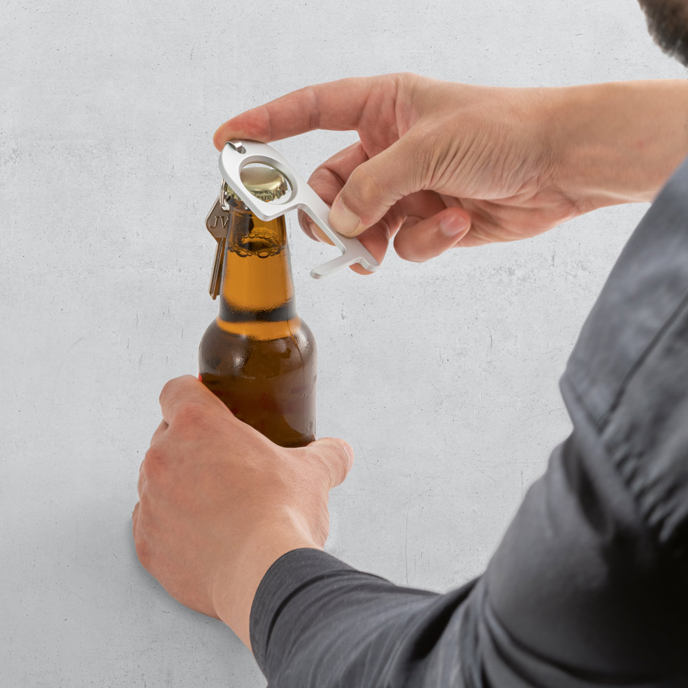 Hliníková klíčenka BESAFE II. s otvírákem na lahve. Díky jejímu designu ji lze použít k otevírání dveří a špičku lze používat rovněž na tlačítka např. v bankomatech nebo ve výtazích. V dnešní době je tato klíčenka opravdu nezbytným pomocníkem při každodenních úkonech. Praktický rozdávací dárek pro Vaše zaměstnance, klienty či obchodní partnery!