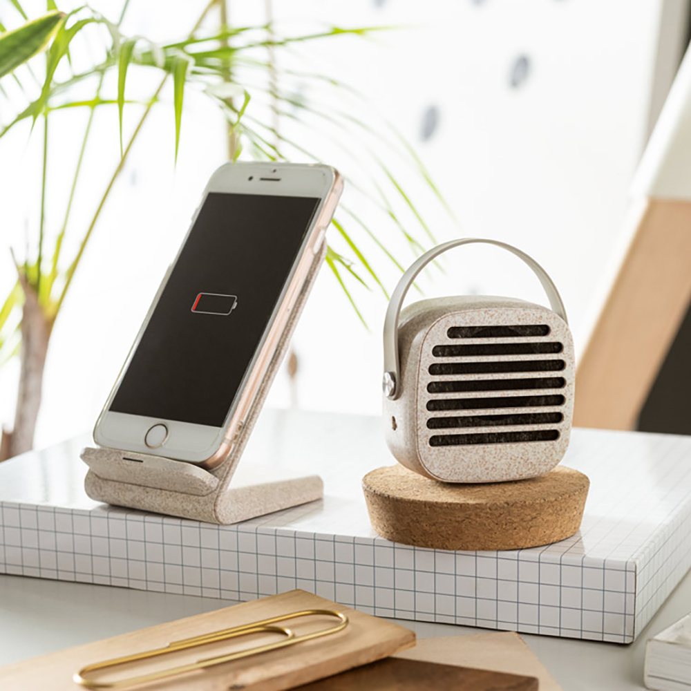 Přenosný reproduktor HANGER z pšeničné slámy a ABS se silikonovou rukojetí pro snadnou přepravu. Bezdrátový reproduktor s výkonem 3 W a podporou Bluetooth 5.0. Výdrž až 4h 30m, s 500 mAh baterií. Dodáváno v dárkovém balení z kraftového papíru. Originální a cool dárek pro Vaše zaměstance či obchodní partnery!