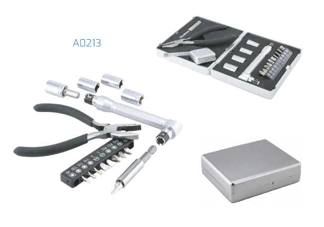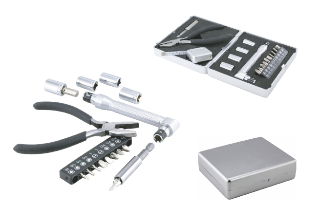 Sada kovového nářadí v plastovém boxu – 18 funkcí.