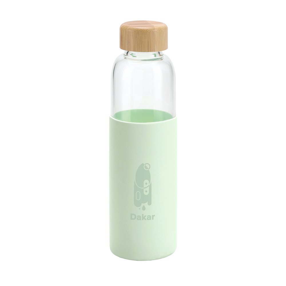 Skleněná láhev MANON je borosilikátová láhev s bambusovým víkem a silikonovým pouzdrem. Láhev má objem až 600 ml a je dodávána v krabici. Atraktivní láhev na sport, do práce či pro volný čas!