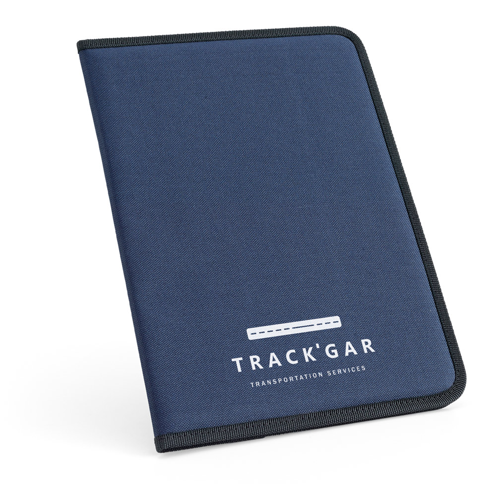 Složka na dokumenty RON ve formátu A4 z 600D s dvaceti linkovanými papíry, vnitřní kapsou a držákem na pero (pero není součástí balení).