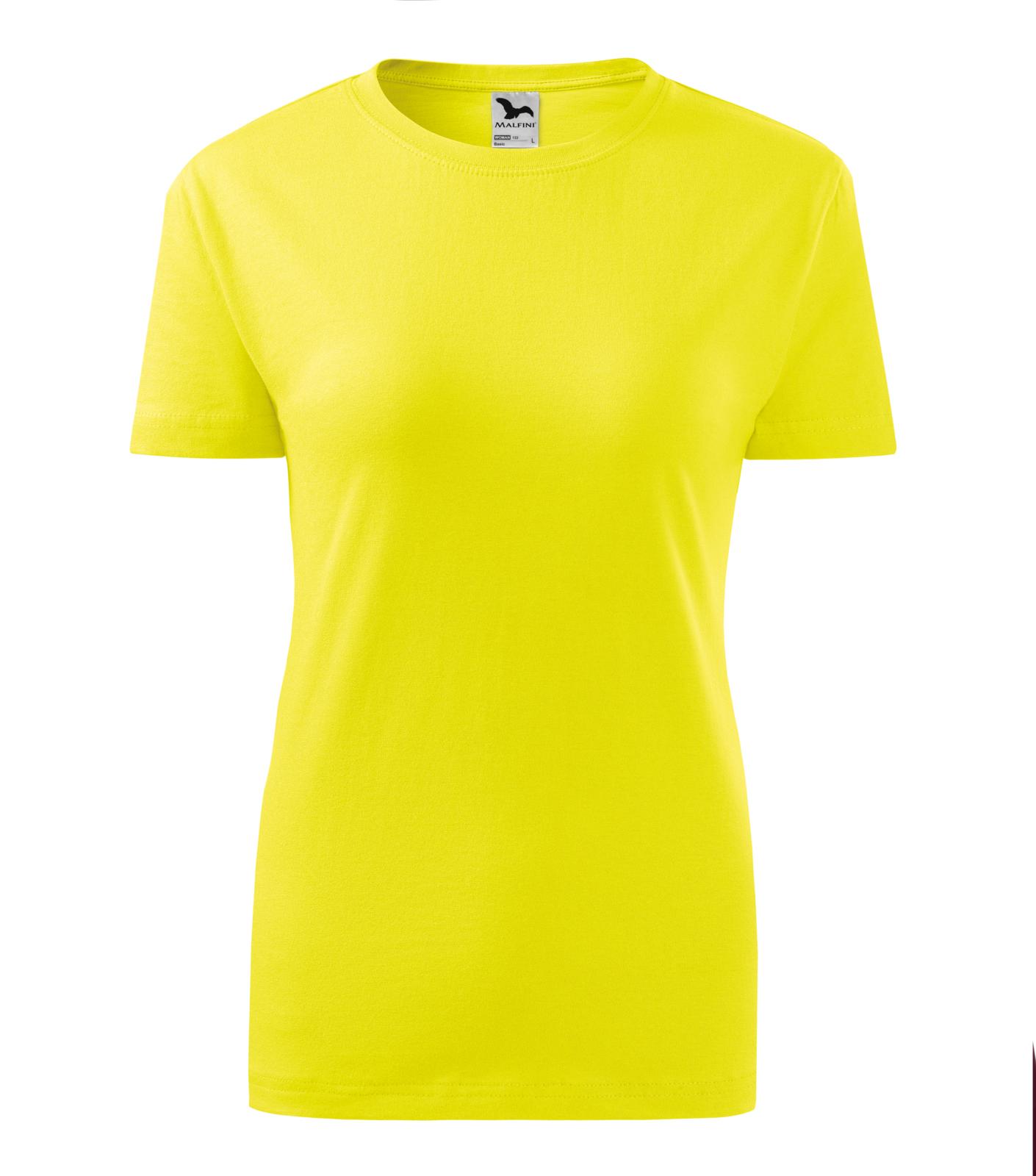 Dámské tričko Malfini z řady Classic New, 145g/m2, Single Jersey, 100% bavlna (složení se může lišit - barva 03 - 97 % bavlna a 3 % viskóza, barva 12 - 85 % bavlna, 15 % viskóza), pratelné na 40 st. Dostupné ve velikostech XS - 2XL.