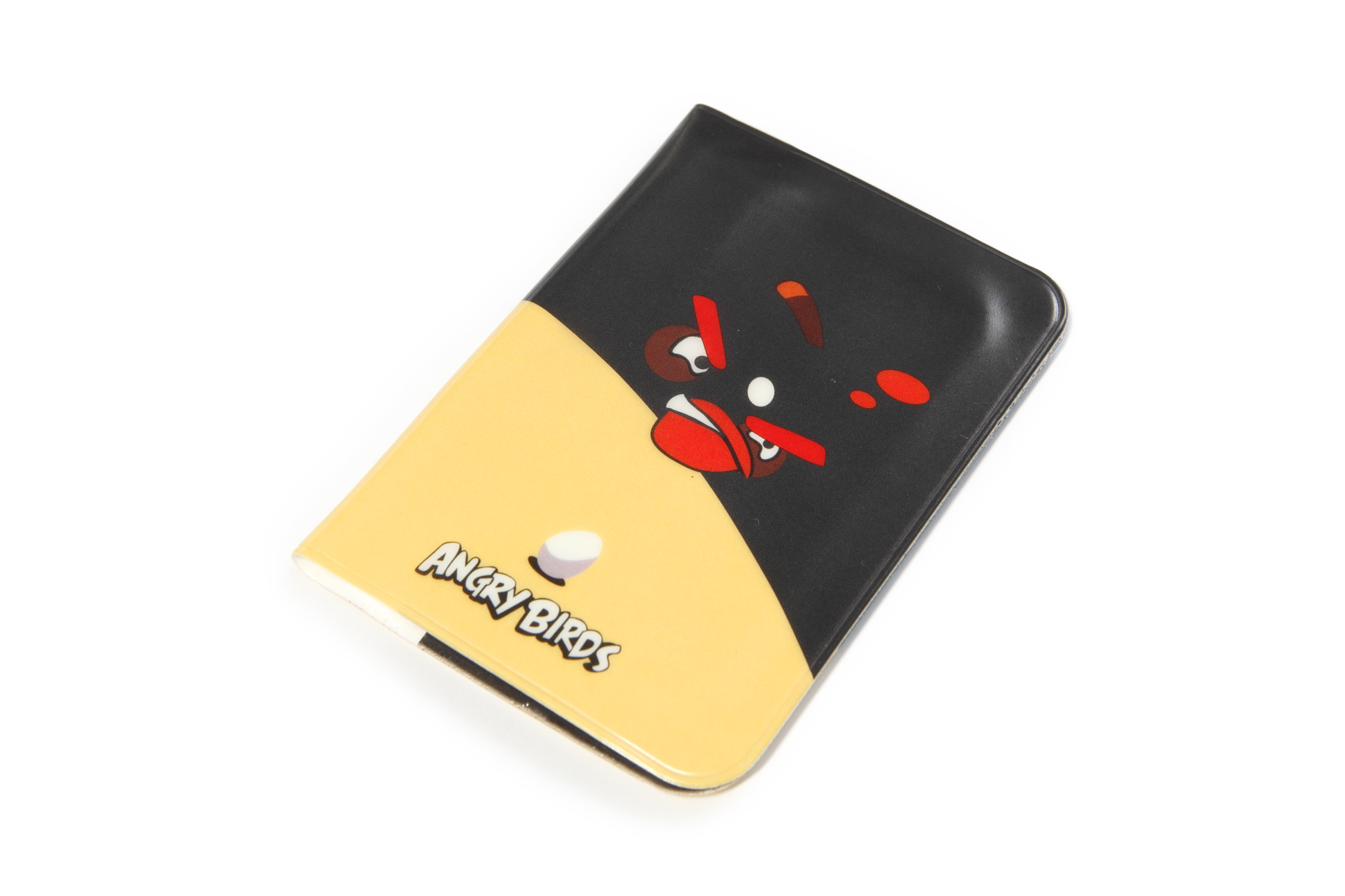 Praktický kapesní vizitkář v plastovém provedení s potiskem Angry Birds, černábarva. Kapacita na 16 ks vizitek, váha 30 g, rozměry 10,5 x 7 cm, s přídavnými kapsičkami uvnitř po obou stranách.