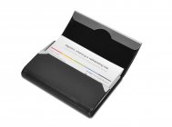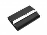 Exkluzivní pánské pouzdro na vizitky v koženém provedení a kovovým otevíráním. Velmi pěkný detail, možnost vložit 15 až 20 ks vizitek, váha 60 g, rozměry 11 x 8 x 1,7 cm, materiál kůže PU / kov.