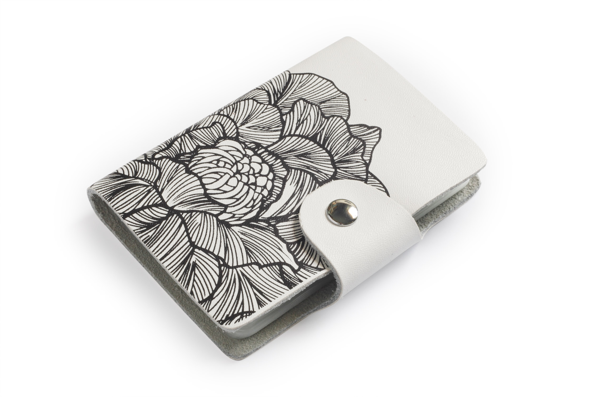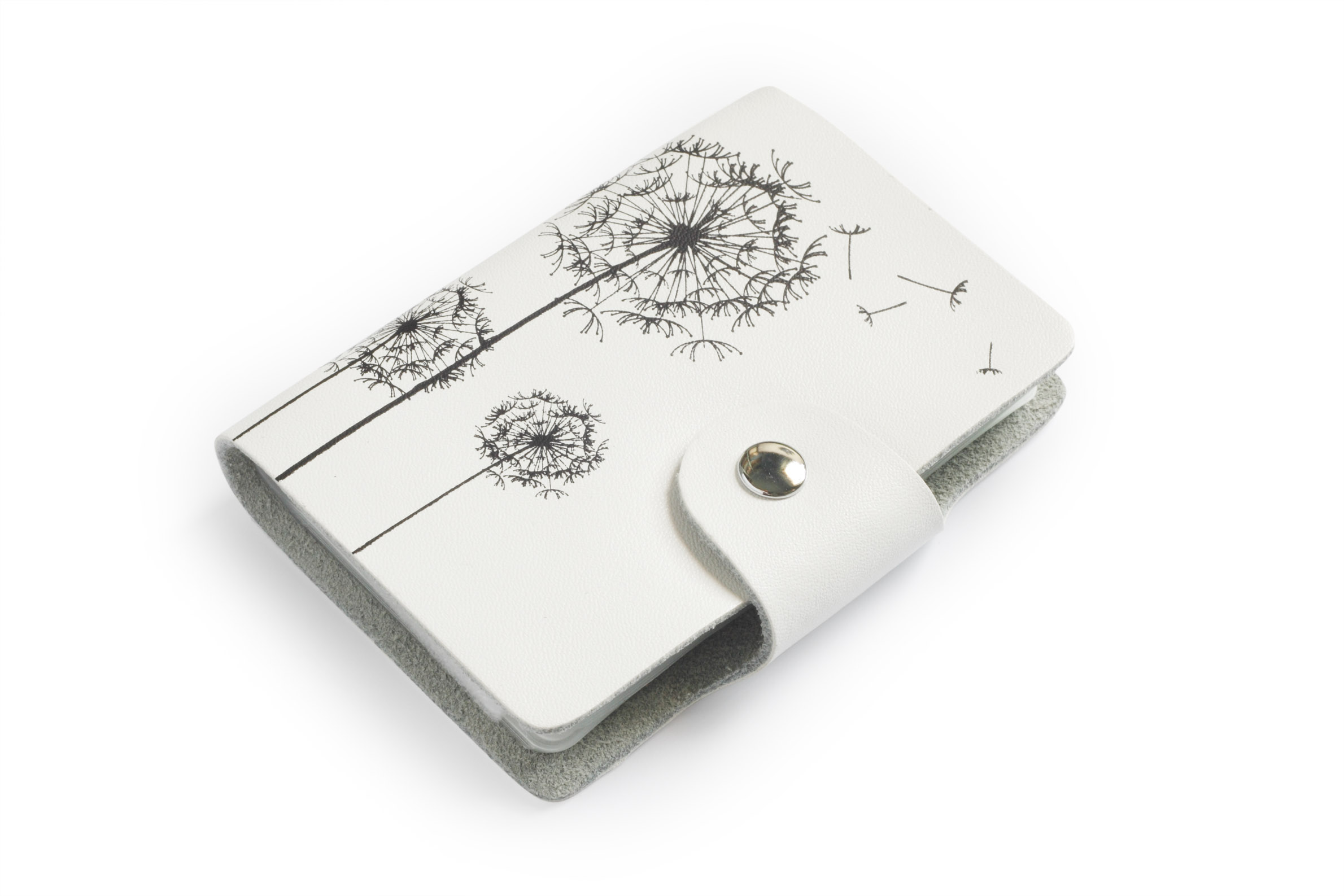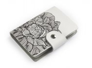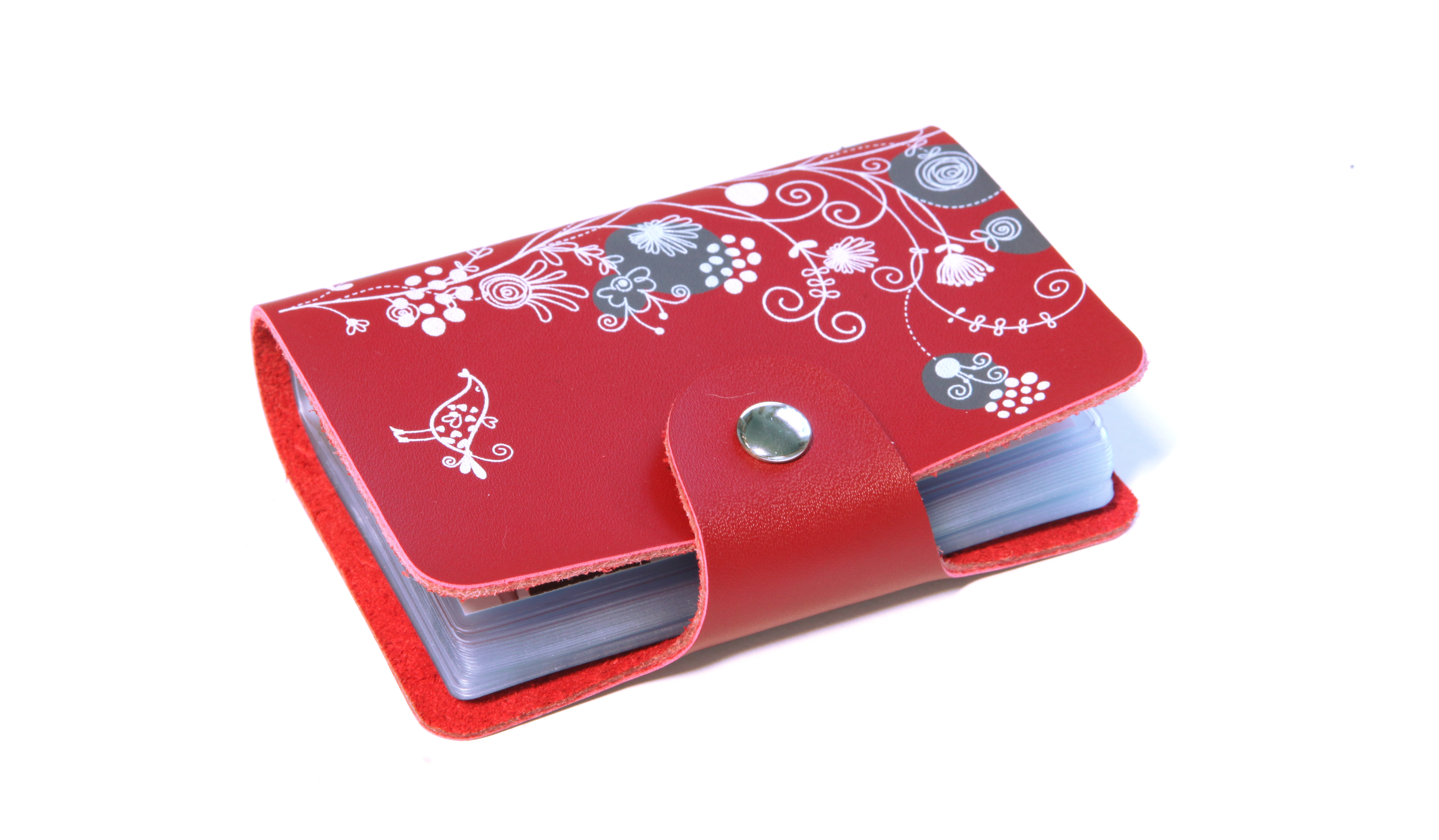 Stylový dámský vizitkář z pravé kůže do kapsy. Kapacita na 26 ks vizitek, váha 120g, rozměry 10,5 x 7,5 cm, se zapínáním na cvoček.