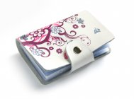 Stylový dámský vizitkář z pravé kůže do kapsy. Kapacita na 26 ks vizitek, váha 120g, rozměry 10,5 x 7,5 cm, se zapínáním na cvoček.