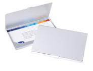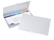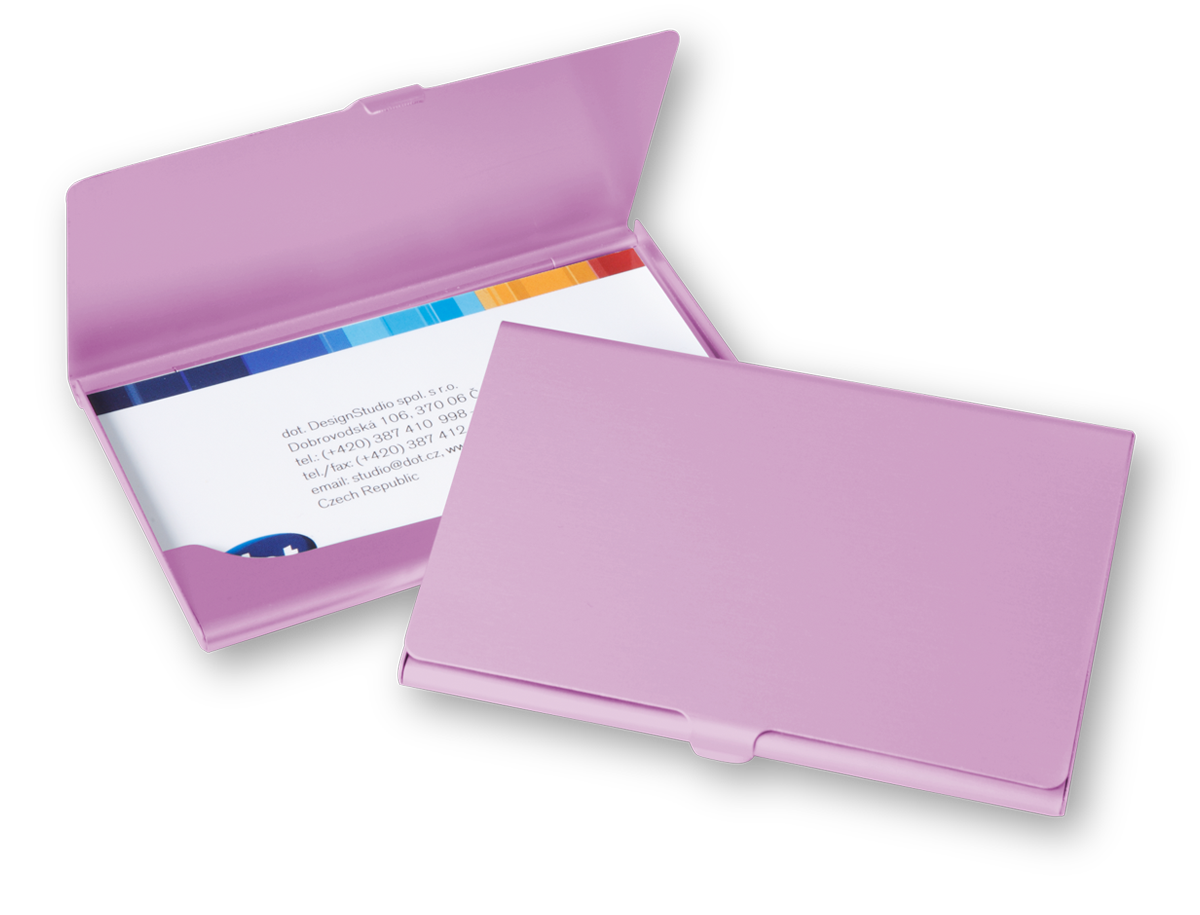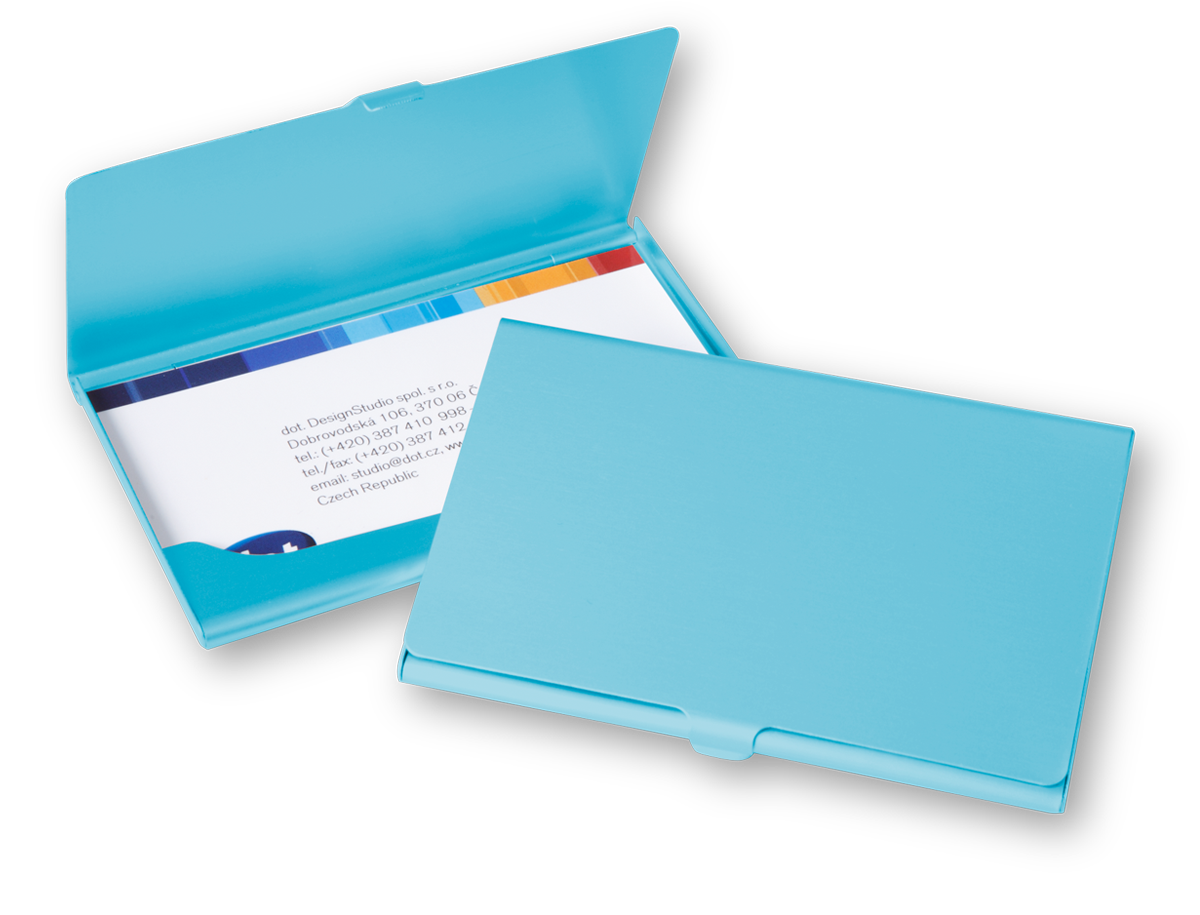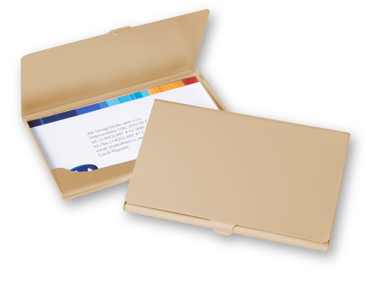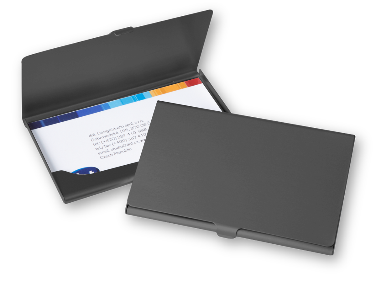 Kvalitní a pevné kovové pouzdro na 20 - 25 ks vizitek dle gramáže. Váha 15g, rozměry 95 x 60 mm, uzaviratelné na zobáček, baleno v papírové krabičce.