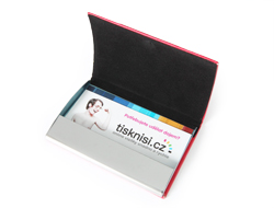 Exkluzivní dámské pouzdro na vizitky v hliníkovém a koženém provedení červené barvy. Velmi pěkný detail, možnost vložit 15 až 20 ks vizitek, váha 70 g, rozměry 11 x 8 x 1,7 cm, materiál kůže / broušený hliník.