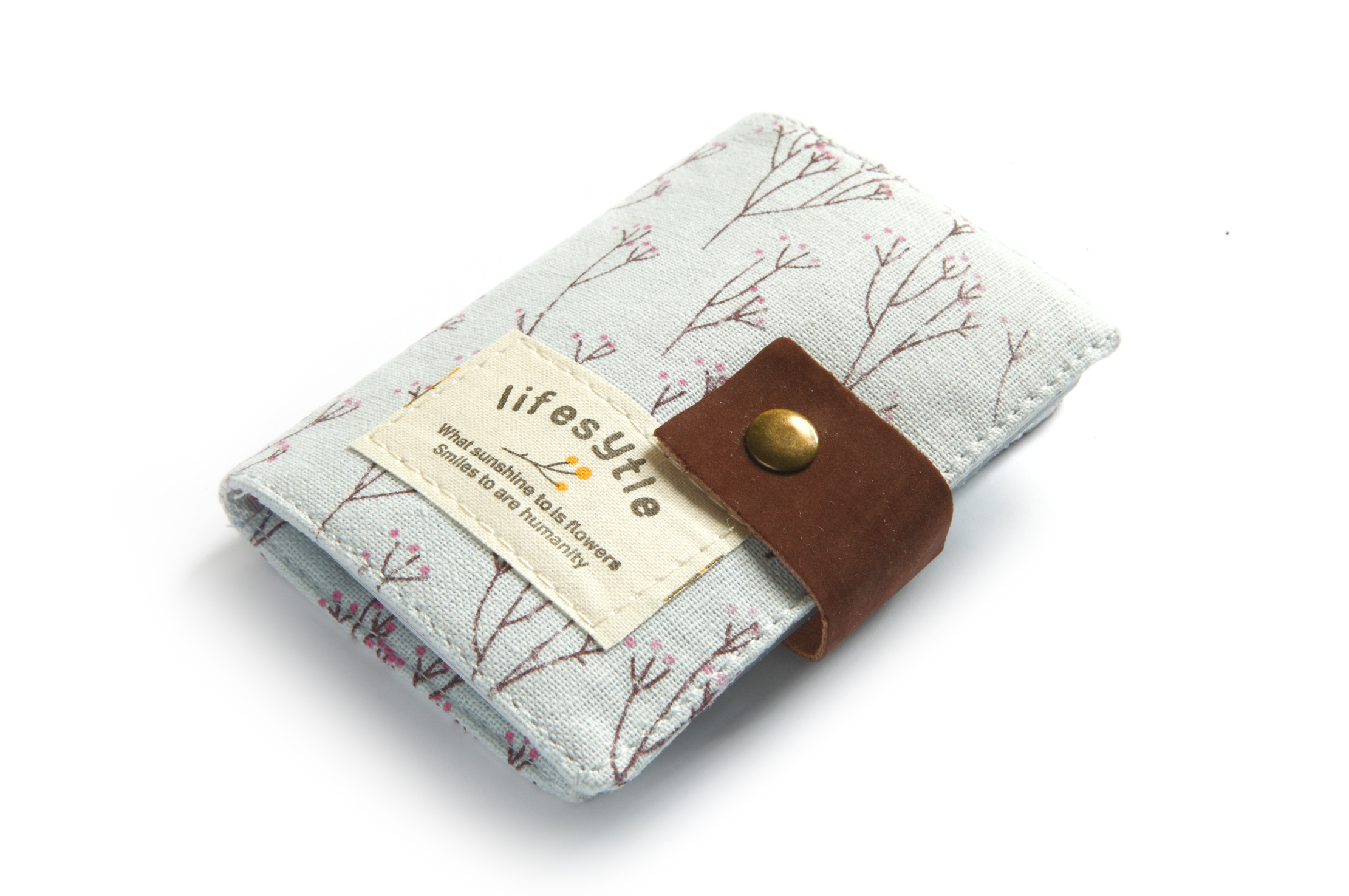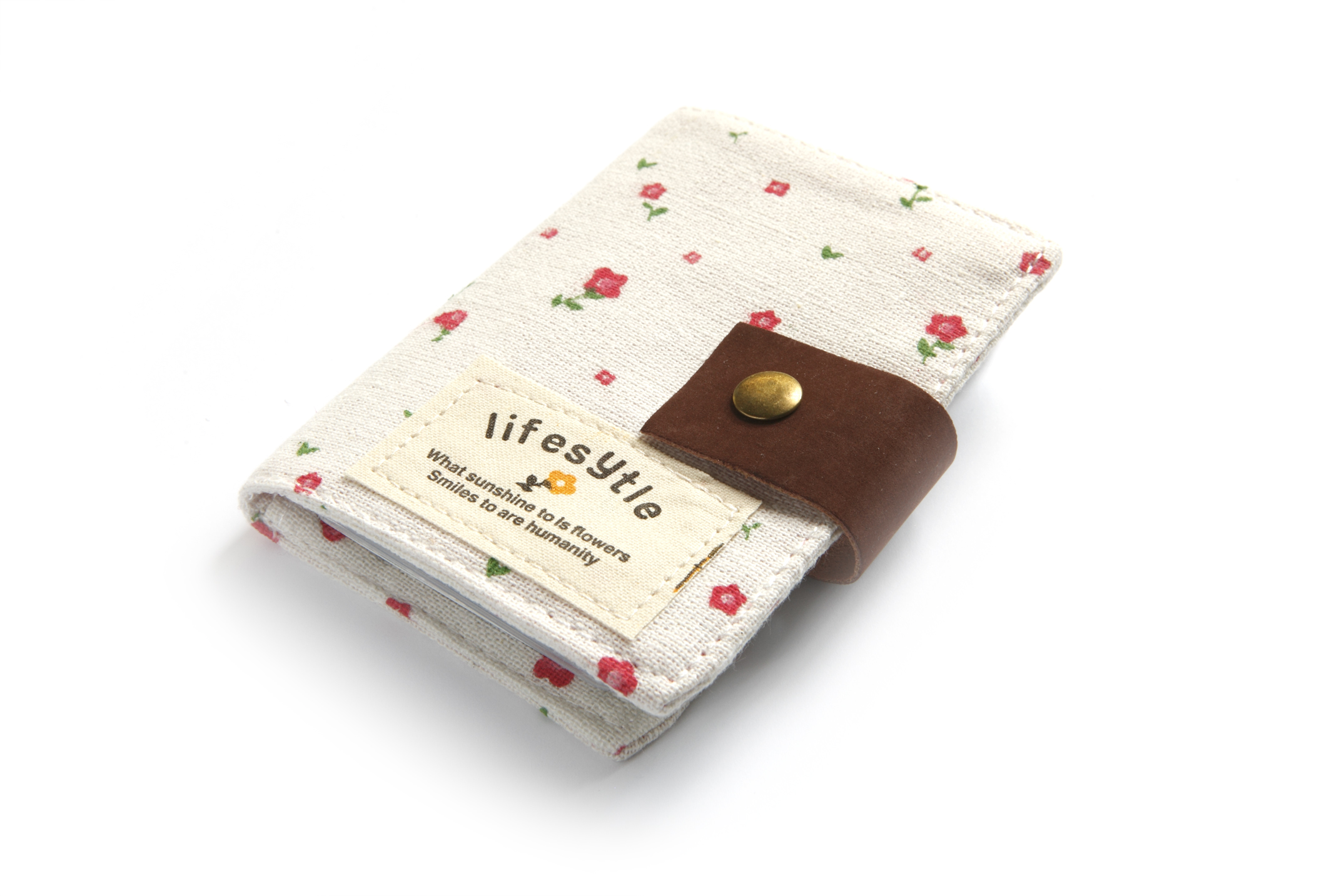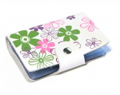 Praktický a elegantní látkový vizitkář s nášivkou. Kapacita na 20 ks vizitek, váha 40g, rozměry 10 x 7 cm, se zapínáním na cvoček.