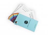 Ve vzorníku naleznete klasické papíry (křídy lesklé, matné nebo ofsety), ale také speciální papíry (plast, magnet, slída) nebo ukázky laminací (lesk, mat, softouch) či oblých rohů a perforace.