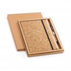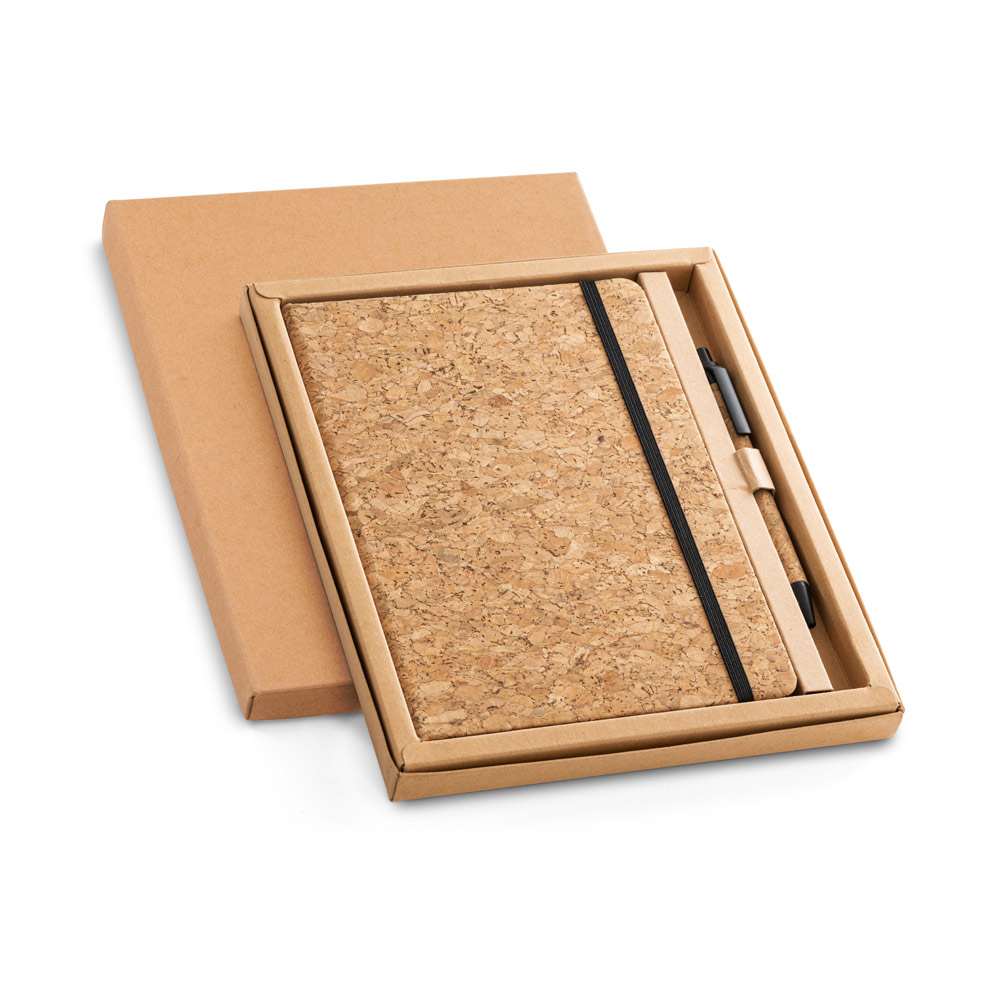 Zápisník s kuličkovým perem KROCKET. Sada A5 zápisníku a korkového kuličkového pera. Zápisník obsahuje 192 linkovaných stránek z recyklovaného papíru v barvě slonoviny. Krásný moderní a ekologický zápisník s možností potisku. Dodáváno v dárkové krabičcce.