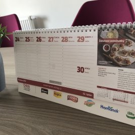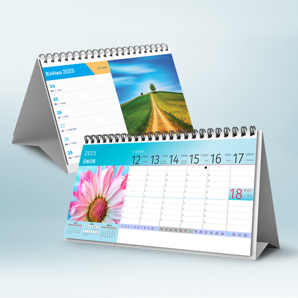 Stolní kalendáře tiskneme ve variantách 14 denní (28 stran) a týdenní (54 stran). Je možné vytisknout kalendář ve formě plakátu na zeď nebo jakýkoliv atypický projekt.