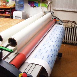 Pro náročnější aplikace doporučujeme laminaci samolepek, která mnohonásobně zvýši jejich odolnost. Zejména u polepů výloh, dopravních prostředků, podlahových samolepek atd. je to naprostá nutnost, která je automaticky součástí ceny od nás.