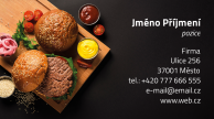 Vizitka s bílé prostřeným stolem a stříbrným příborem se stuhou, vhodné pro restaurace. Kvalitní zpracování a výběr z více než 250 šablon. Tisk vizitek do druhého dne, expresní dodání.