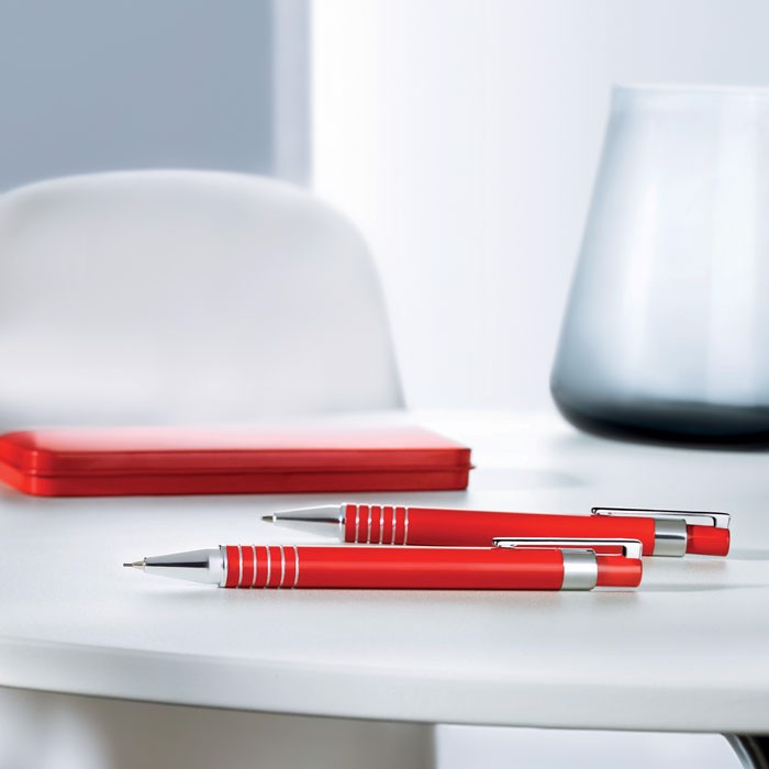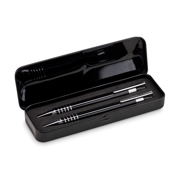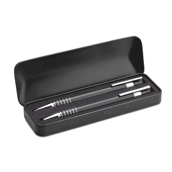 Sada kovového kuličkového pera a mikrotužky v dárkovém boxu.
