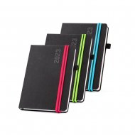 Diář A5 TRUE COLORS z imitace kůže s atraktivním barevným pruhem.. Na vyžádání možnost ražby loga do kůže za příplatek.