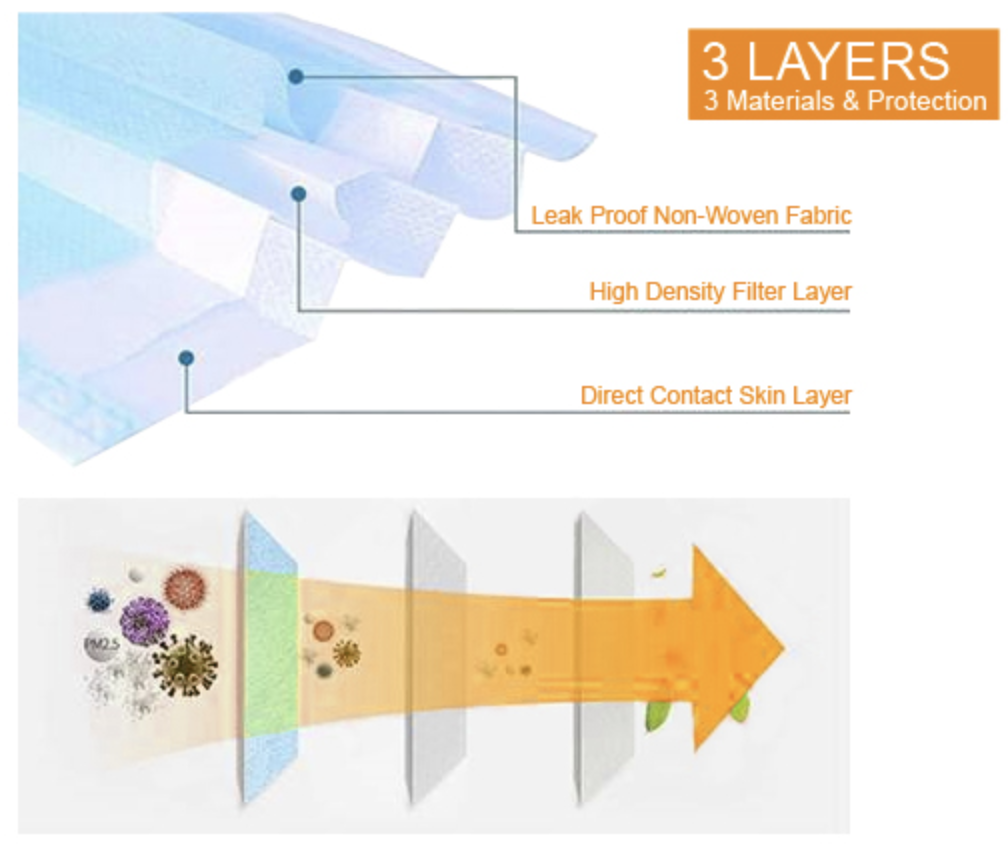 Jednorázové 3vrstvé roušky v balení po 50 ks, 3 vrstvy - anti covid19.