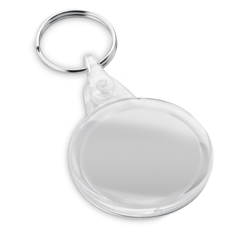 Klíčenka BLOUM. Průhledná klíčenka z PS ve tvaru kruhu s možností natisknutí Vašeho loga!