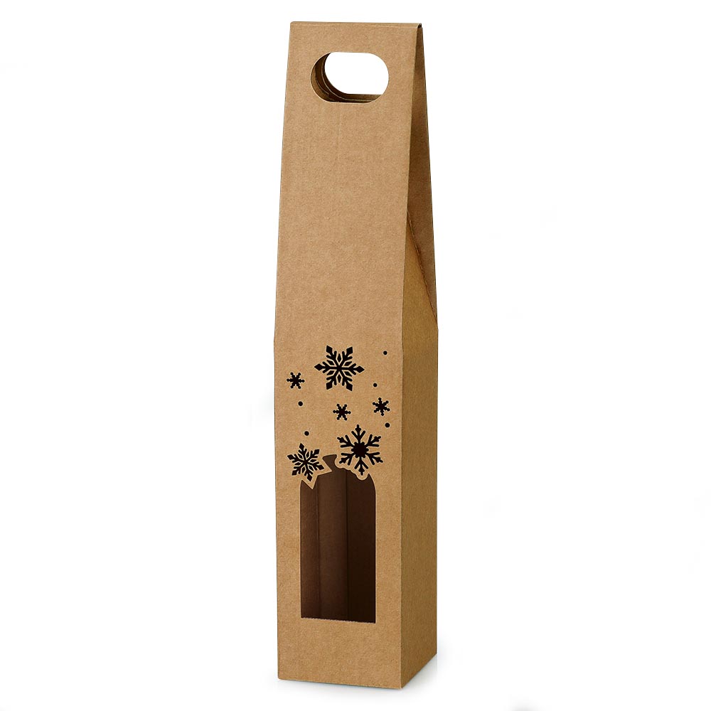 Dárková krabice na víno LORA s výřezem a vánočním vzorem. Elegantní krabička ze 100% lepenky.