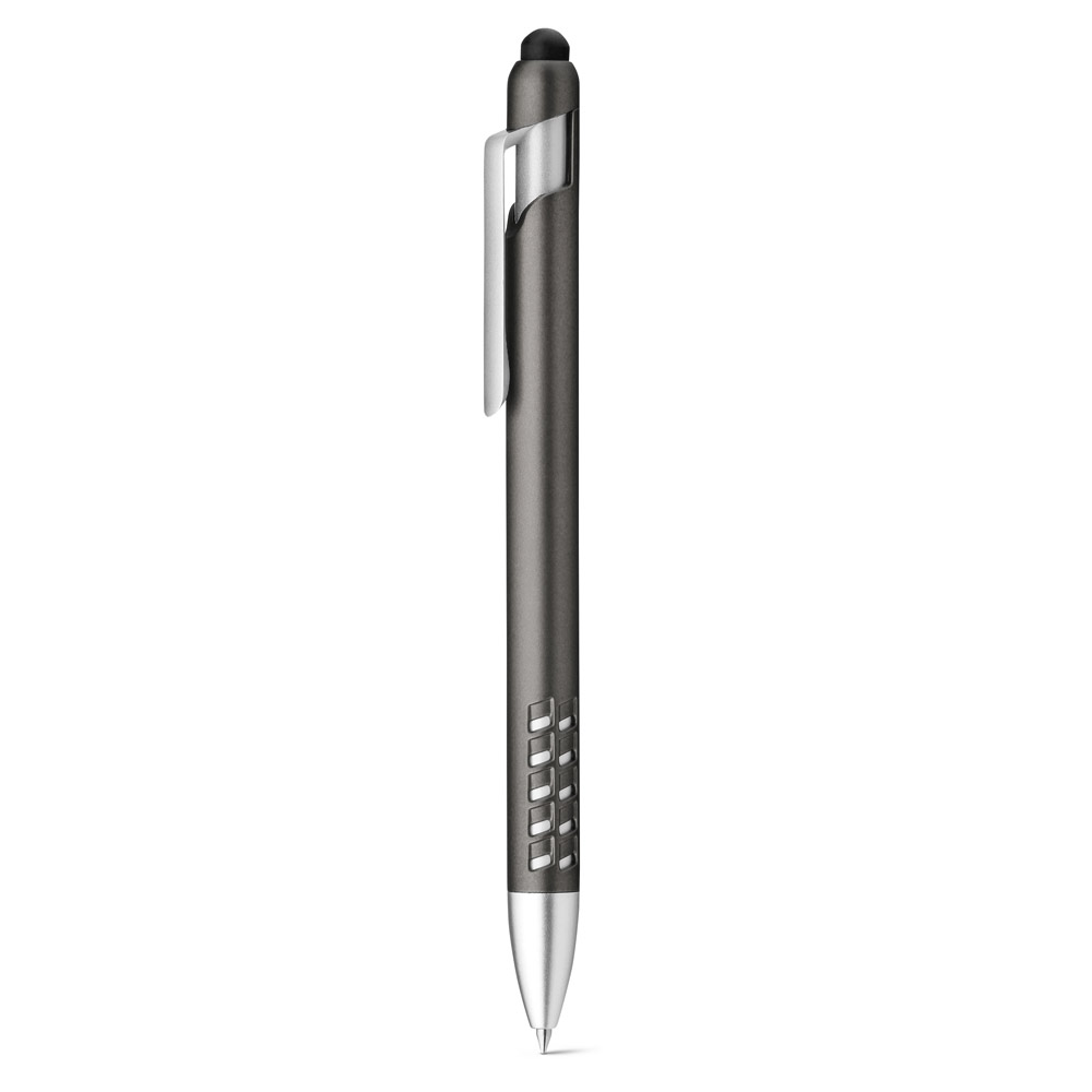Kuličkové pero AKON s dotykovým hrotem a držákem na mobilní telefon. Stříbrné vzorované detaily na vršku pera. Peru nechybí praktický klip díky kterému budete mít toto originální pero vždy po ruce!