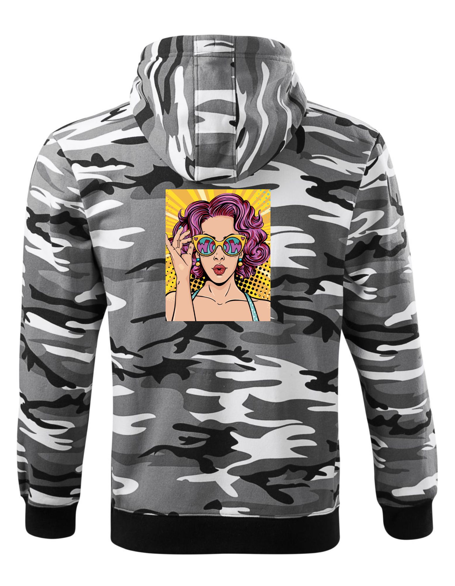 Mikina Camo Zipper C19 + potisk na srdce & obrázek vzadu