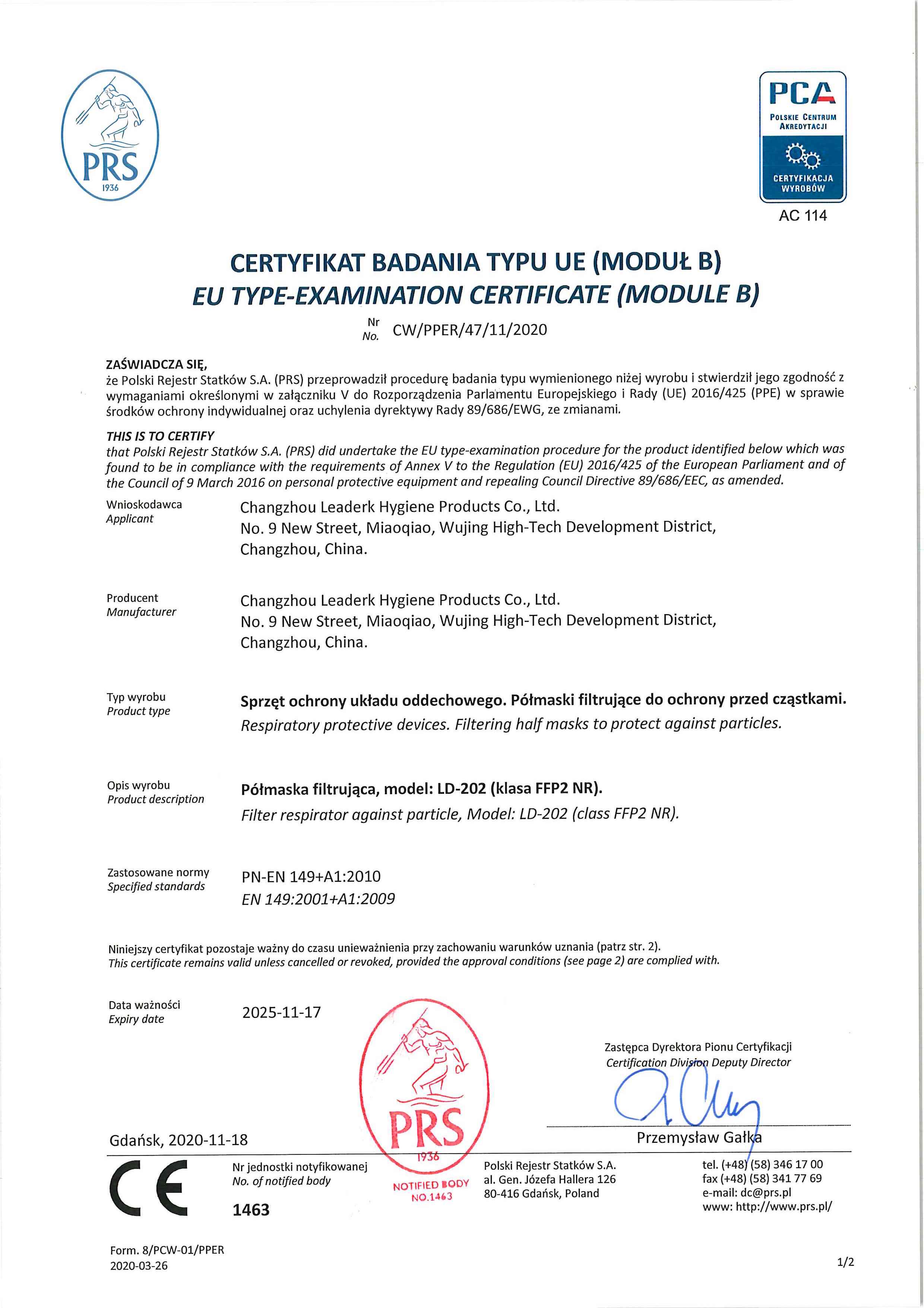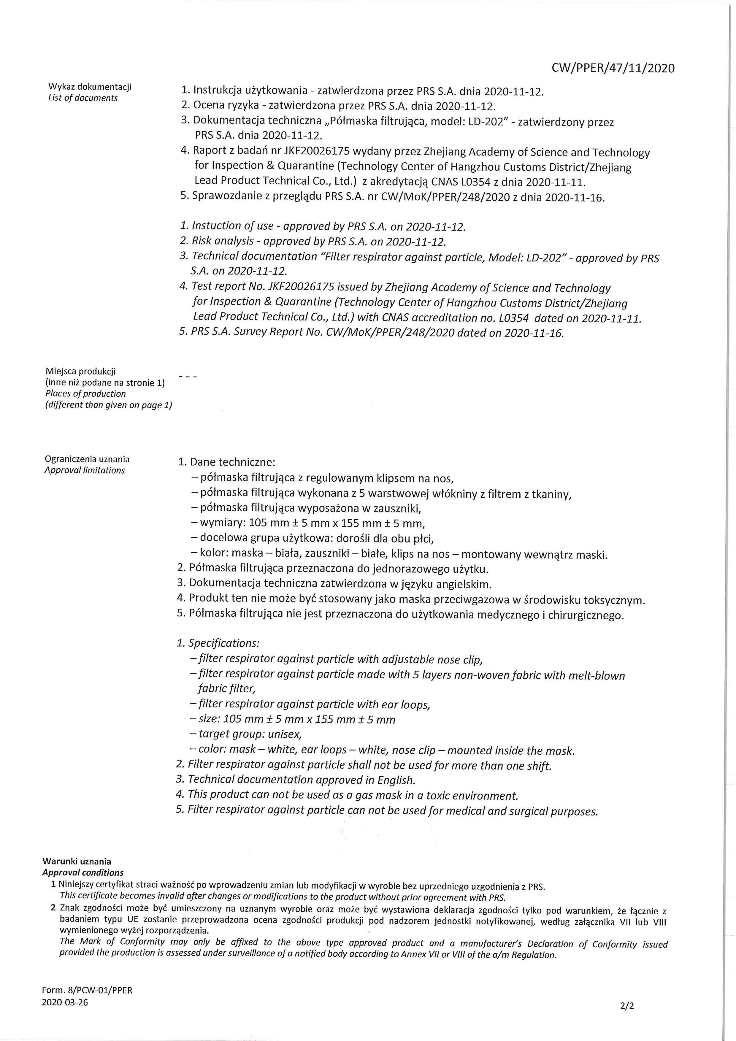 CE certifikace je natištěna přímo na respirátoru. V přiložených obrázkách certifikace.
