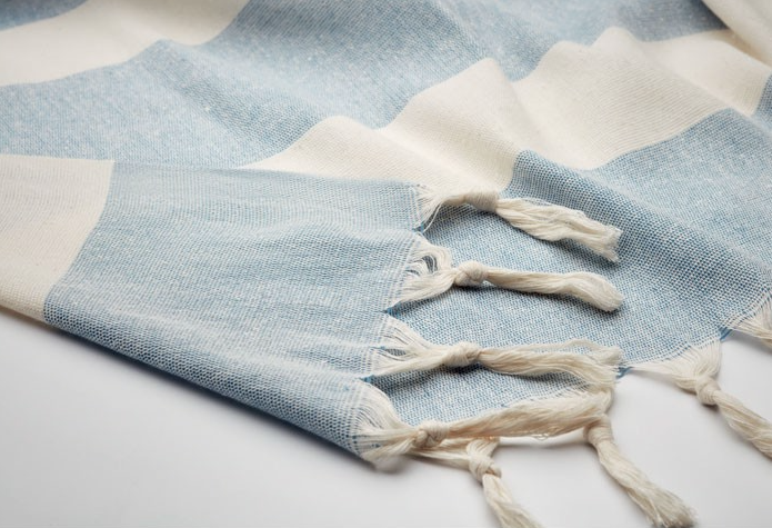 Ručníková deka HAUME 140g . Deka nebo plážový ručník z recyklovaných tkanin recyklované bavlny (45%) a recyklovaného polyesteru (55%).. Krásný a praktický dárek pro Vaše obchodní partnery.