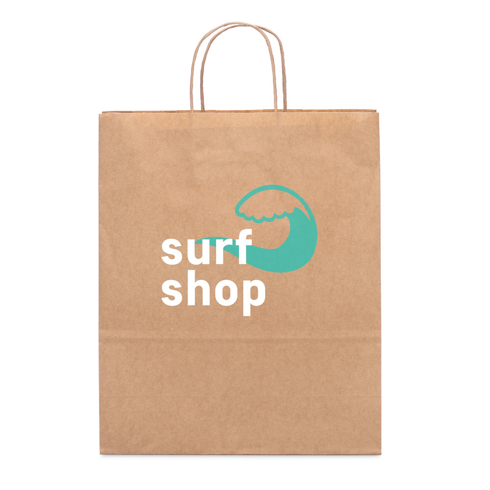 Taška A3 z kraftového papíru BOWER (100 g/m²) s kroucenými uchy. Ekologická papírová taška vhodná na malé dárečky nebo jiné reklamní předměty pro Vaše klienty či obchodní partnery!