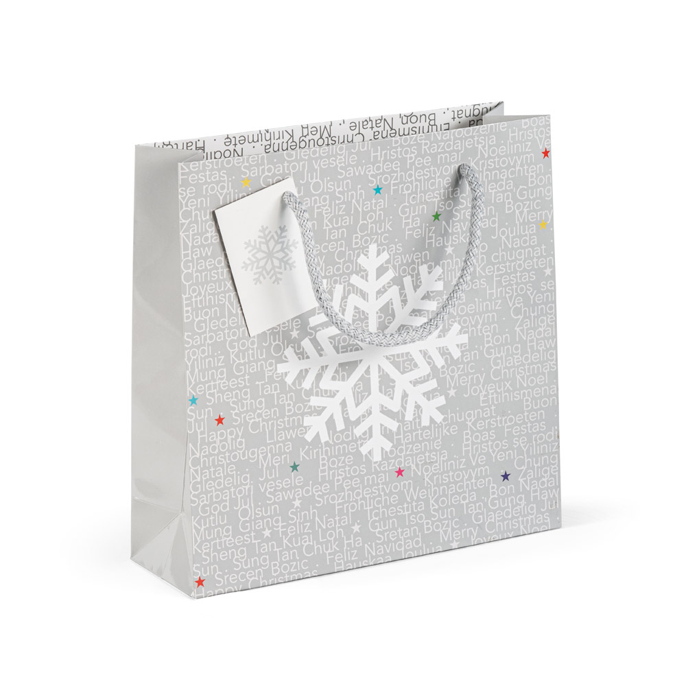 Velká dárková taška A4+ WINTER s lesklým laminováním (170 g/m²). Luxusní dárková papírová taška na drobné vánoční dárky. V této tašce budou i ponožky luxusním dárkem! Taška má kartonové dno a kartičku na jméno/visačku. Visačku je možné na zadní straně potisknout.