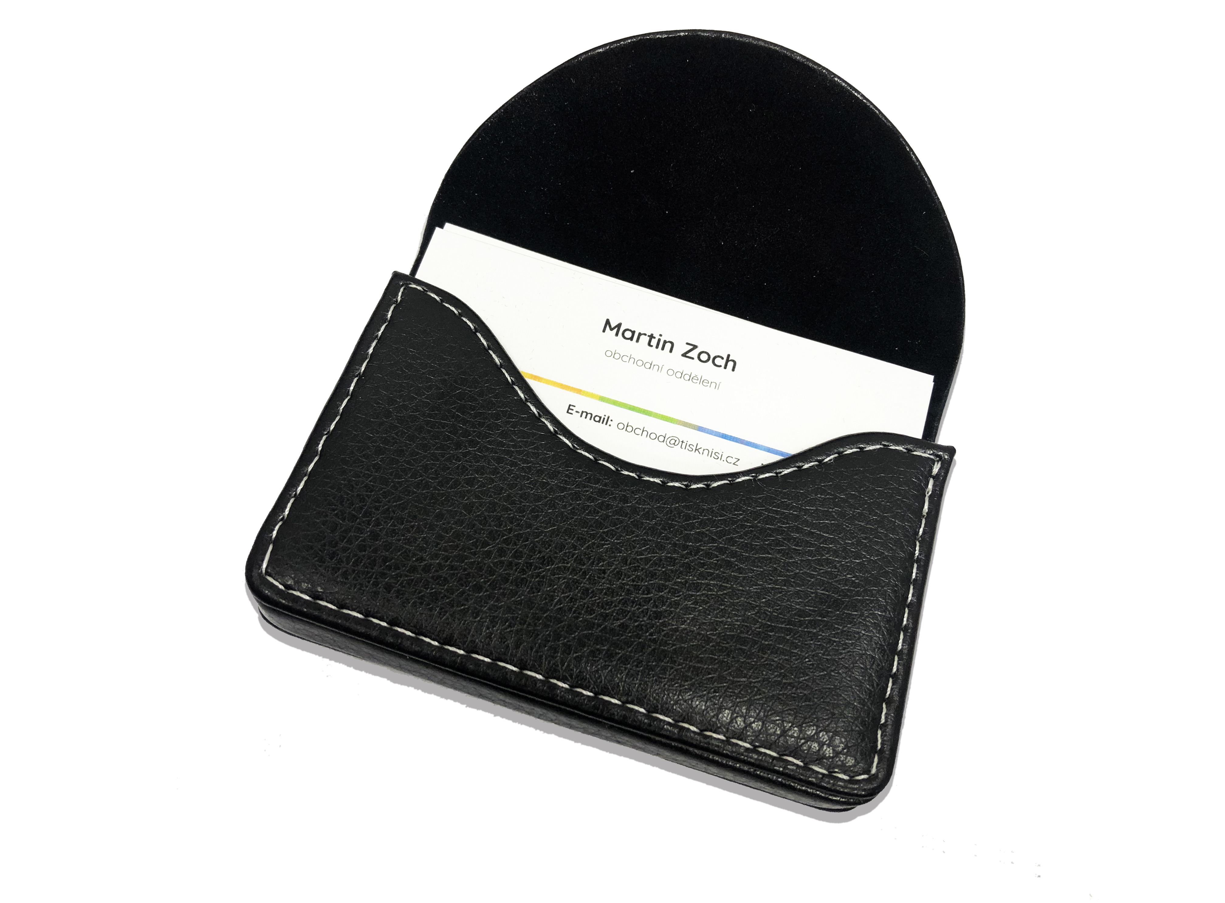 Exkluzivní pánské pouzdro na vizitky v hliníkovém a koženém provedení černé barvy s horizontálním otevíráním. Velmi pěkný detail, možnost vložit 15 až 20 ks vizitek, váha 60 g, rozměry 11 x 8 x 1,7 cm, materiál kůže / broušený hliník.