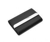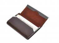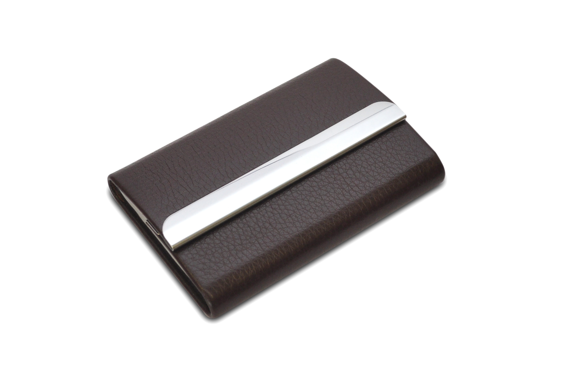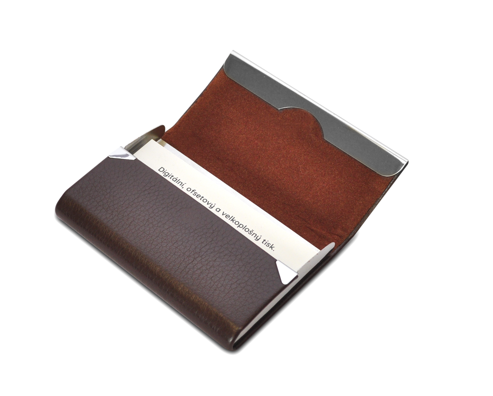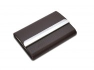 Exkluzivní pánské pouzdro na vizitky v koženém provedení a kovovým otevíráním. Velmi pěkný detail, možnost vložit 15 až 20 ks vizitek, váha 60 g, rozměry 11 x 8 x 1,7 cm, materiál kůže PU / kov.