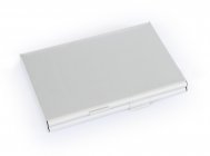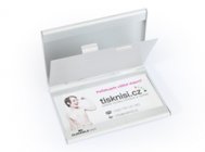 Lehké a praktické dvojité kovové pouzdro na vizitky. Možnost vložení 2 x 20 - 25 ks vizitek dle gramáže. Váha 18 g, rozměry 95 x 60 mm, uzaviratelné na zobáček, baleno v papírové krabičce, vyrobeno v Německu.