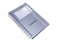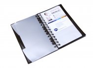 Elegantní příruční vizitkář formátu A5 v kroužkové vazbě se záložkami stříbrné barvy. Kapacita na 96 ks vizitek, váha 149 g, rozměry 210 x 148 mm, elastické zavírání na gumičku. Ideální pouzdro na vizitky, které potřebujete mít každý den u sebe.