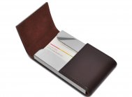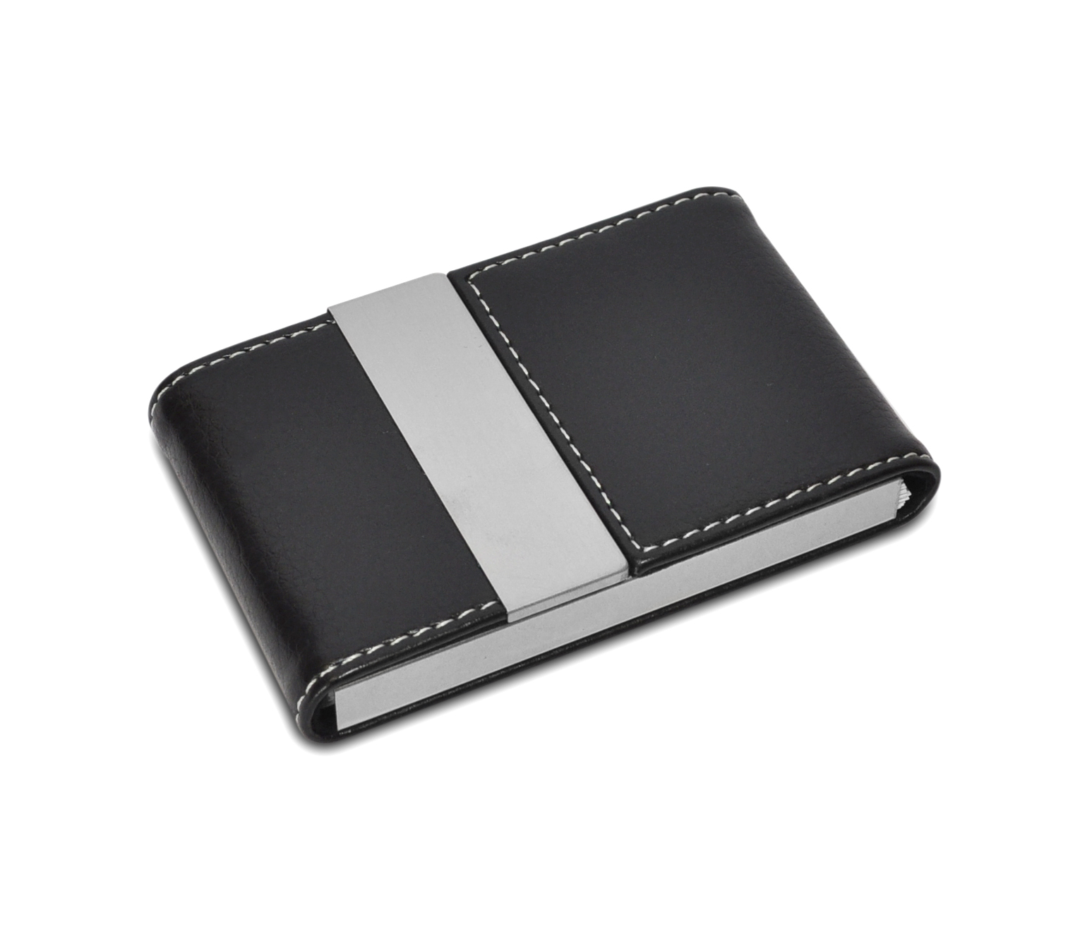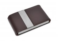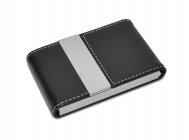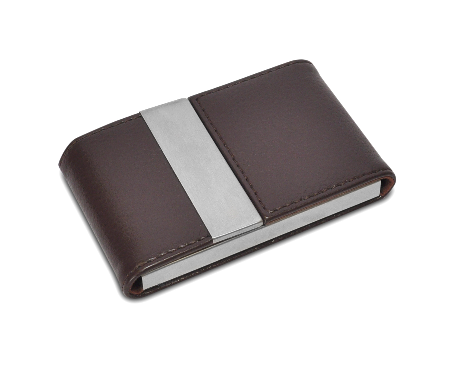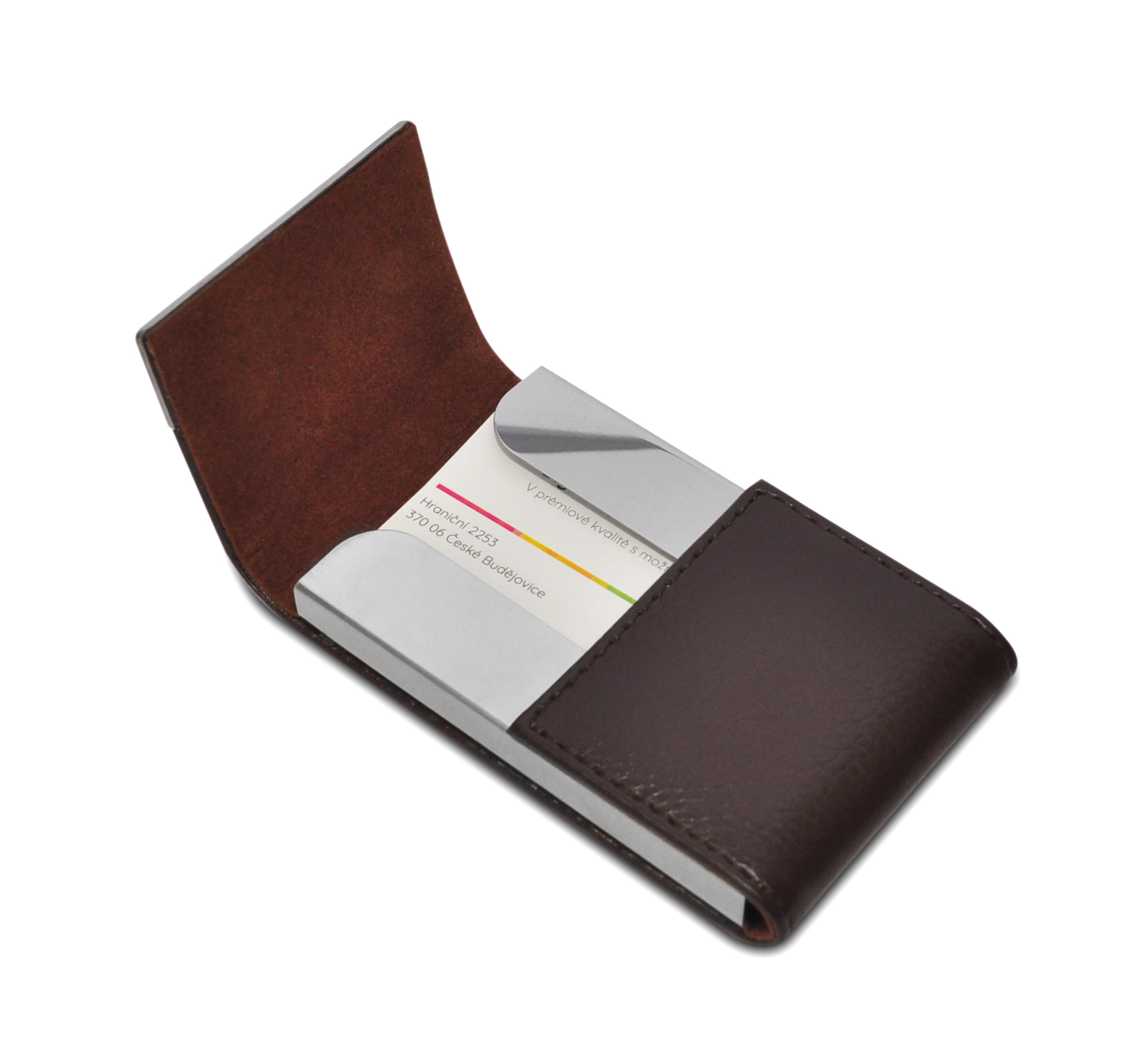 Luxusní pánské pouzdro na vizitky v koženém provedení s elegantním obšitím a kovovým otevíráním uprostřed. Velmi pěkný detail, možnost vložit 15 až 20 ks vizitek, váha 60 g, rozměry 11 x 8 x 1,7 cm, materiál kůže PU / kov.
